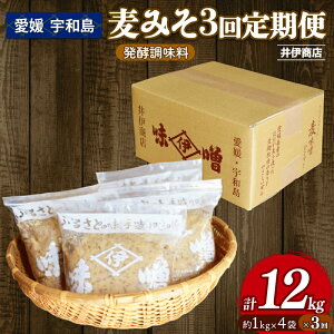 【愛媛県宇和島市】味噌 麦みそ 1kg × 4袋 3回 計 12kg 定期便 井伊商店 全麦麹味噌 天然醸造 非加熱 生味噌 麦みそ みそ 麦味噌 食品 miso お味噌 おみそ ...