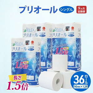 【ふるさと納税】定期便 全9回 プリオール・ピコ トイレット ペーパー 1.5倍巻き シングル 90m 計36ロール (12ロール×3パック) 日本製 まとめ買い リサイクル 防災...