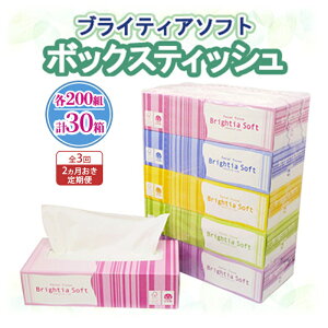【ふるさと納税】定期便 2ヵ月毎 全3回 ブライティア ソフト ボックスティッシュ 200組 400枚 30箱 (5箱×6) BOX 日本製 まとめ買い ティッシュ リサイクル 長...