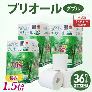 【ふるさと納税】定期便 2ヵ月毎 全3回 プリオール・ピコ トイレット ペーパー 1.5倍巻き ダブル 45m 計36ロール (12ロール×3パック) 日本製 まとめ買い リサイク...