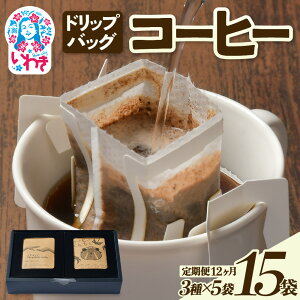 【ふるさと納税】ドリップバッグコーヒー15個(3種×5個)選べる回数(単品/定期便3回/定期便6回/定期便12回) | ドリップバッグコーヒー 3種飲み比べ 個包装 中煎り 深煎り...