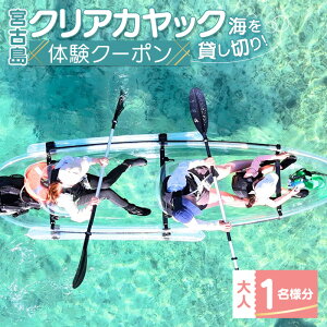 商品詳細 宮古島の海を貸し切って楽しめる1組限定のプライベートツアー「クリアカヤック」体験にご利用いただける体験クーポンです。 座ったまま安定して楽しめるので、ご家族や小さなお子様連れにも人気。 透明なカヤックから海中を覗