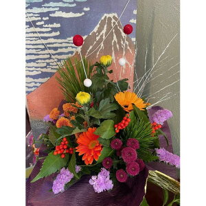 【ふるさと納税】新しい年の始まりは、華やかに縁起の良いお正月花を飾って!美里町の人気フローリスト店から和をイメージした正月用の生花アレンジメントをお届け。花器は不用で届いたその日からお部屋を華やかに彩ります...