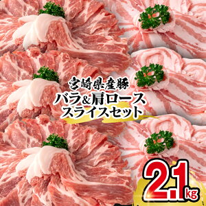 【数量限定】宮崎県産豚肉バラ肉・肩ローススライスセット 【セット内容】・肩ローススライス:400g×3(合計:1.2kg)・バラスライス:300g×3(合計:900g)セット合計:2.1kg 豚バラと豚肩ロース...
