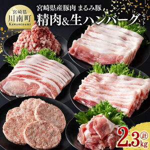 【ふるさと納税】宮崎県産豚肉 「まるみ豚」 精肉&生ハンバーグセット計2.3kg 内容量 生ハンバーグ100g×5 豚スライス200g×2 粗挽きミンチ200g×2 こま切れ200g×3 ローススライス200g×1...