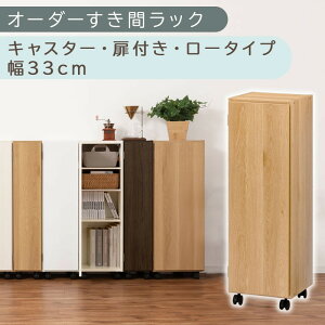 【ふるさと納税】【国産家具】オーダーすき間ラック〔キャスター・扉付き・ロータイプ 31cm~33cm 〕(選べる4色×3サイズ)すき間ラック 収納棚 約 奥行32 高さ96 扉付き...
