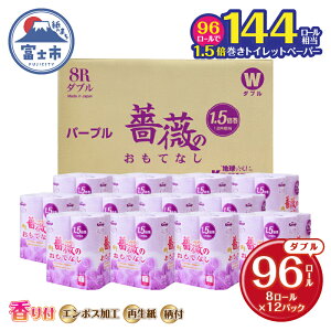 【ふるさと納税】【144ロール相当】 1.5倍巻 トイレットペーパー 薔薇のおもてなし 96ロール ダブル 大容量 超吸水 ふんわり 肌にはりつきにくい パープル 香り付き まとめ...