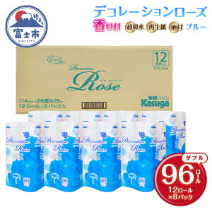 【ふるさと納税】 トイレットペーパー デコレーションローズ ブルー 96ロール (12R×8パック) ダブル ふんわり感 吸水性 古紙 大容量 まとめ買い 備蓄 防災 日用品 消耗...