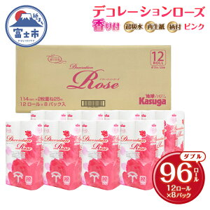 【ふるさと納税】 トイレットペーパー デコレーションローズ ピンク 96ロール (12R×8パック) ダブル ふんわり感 吸水性 古紙 大容量 まとめ買い 備蓄 防災 日用品 消耗...