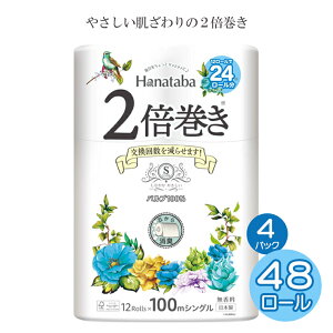 【ふるさと納税】 2倍巻き トイレットペーパー 「Hanataba」 48ロール (12R×4P) 選べる厚さ シングル/ダブル パルプ100% 長持ち 消臭 無香 エンボス なめ...
