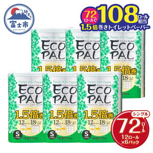 【ふるさと納税】 108ロール相当 1.5倍巻き トイレットペーパー 「エコロジーパルナップ」 シングル 72ロール (12R×6P) (1ロール 90m) 省スペース 再生紙10...