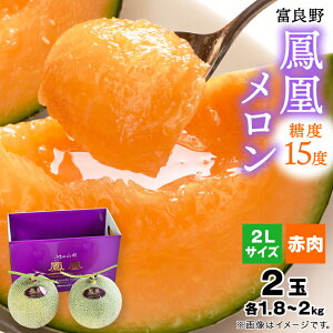 【ふるさと納税】【2026年発送】糖度15度 富良野鳳凰メロン(赤肉) 2玉 各1.8〜2kg(2Lサイズ)_ メロン めろん 富良野メロン 富良野めろん 北海道 富良野市 果物 ...