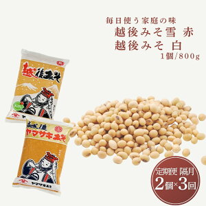 雪(赤)&白 合計1.6kgを、全3回隔月でお届けします。 ■越後みそ雪(赤):大豆のもつ旨みを充分に引き出した中辛口の越後みそです。 適度な酸味と塩味がほどよく調和した飽きのこない味わいです。 ■越後みそ白:脱皮した大豆とたっぷ
