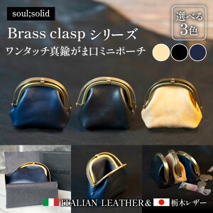 【ふるさと納税】soul solid ワンタッチ 真鍮 がま口 ミニポーチ 選べる カラー ナチュラル ブラック ネイビー 革 マチ ハンドメイド ギフト用 エイジング 小銭収納 ...