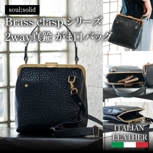 【ふるさと納税】soul solid 2way 真鍮 がま口 バッグ イタリアンレザー ショルダー ブラック 革 レザー ハンドメイド ギフト用 エイジング アンティーク ワイルド...