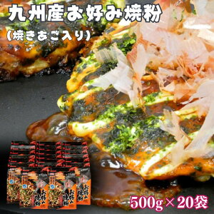 【粉もん好きにはたまらない、お好み焼き粉20袋セット】 九州産小麦を100%使用し、焼きあごは国産を使用するなど、素材にこだわった贅沢なお好み焼き粉です。 焼きあごの旨味を活かし、風味豊かでふわっと香ばしく、おいしいお好み焼き