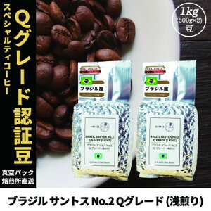 プロが認定した美味しさの証し『Qグレード認証』ブラジル産スペシャリティコーヒー豆1kg。 コーヒー豆 スペシャリティ Qグレード認証豆 ブラジルサントスNo.2浅煎り 1kg(500g×2)