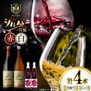 【ふるさと納税】 ワイン 山梨 一升瓶 シルバー& ジュース 4本 セット 1.8L× 2本 (赤 ×1、白 ×1) ジュース 500ml× 2本 赤ワイン 白ワイン わいん お酒...