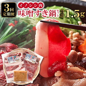 【ふるさと納税】定期便3回コース イノシシ肉 味噌すき鍋セット 約500g 冬猪肉 ロース 200g 夏猪肉 モモ 200g 肉 猪肉 いのしし肉 イノシシ肉 鍋 すき鍋 ぼたん鍋...