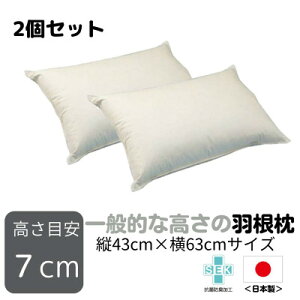 羽根枕【日本製】2個 高さ:7p 一般的な高さ サイズ:43p×63cm まくら メーカー直販 当店人気商品 高品質 フェザー 羽根枕 羽枕 通気性抜群 高品質 作りたて羽根枕 抗...