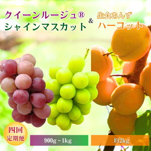 商品説明 名称 スイートなときめき 生食あんず&ぶどう定期便4回 内容量 ・生食あんず(ハーコット)2kg・シャインマスカット/クイーンルージュ/冷蔵シャインマスカット 各2~3房 内容量各900~1000g 消費期限 なるべくお早め...