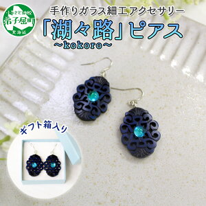弟子屈町の湖「屈斜路湖」から、インスピレーションを受けて作られたイヤリングです! ガラス細工 アイヌ紋様 イヤリング 湖々路 kokoro ハンドメイド 北海道 弟子屈町 1598