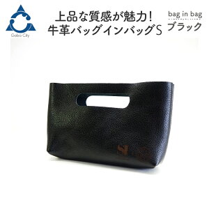 ユニセックスに使えるシンプルなデザインで上質なレザーが際立つ牛革のバッグインバッグ。色はブラックです。ミニ財布、スマホ、ハンカチ等が収まるぐらいのサイズ感。コンパクトな作りで旅行の時のサブバッグやバッグインバッグとし