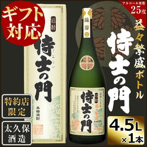 【ふるさと納税】【ギフト対応】【化粧箱入り】幻の旧酎「侍士の門(さむらいのもん)」益々繁盛ボトル 4,500ml×1本!贈り物に最適なインパクトある2升5合サイズを化粧箱に入れてお...