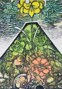 境町出身でモダンアート協会会員の木版画家 冨張廣司氏の作品をお届けいたします。 【数量限定】【木版画家・冨張廣司】雲湧く(40cm×28cm・額付)