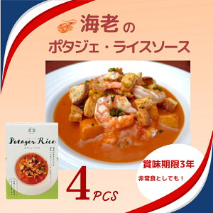 【名称】スープで食べるご飯 海老とトマトのポタジェライス・ソース 4パック 海老の濃厚な出汁の旨味とトマトなど数種類の野菜を一皿にまとめました。 化学調味料・保存料・着色料不使用で、栄養豊富です。 本商品は地方自治体の非常