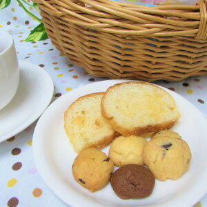夢ある小路のクッキー・ラスクは、障がいのある利用者の方が毎日心を込めて作っています。 クッキーは『プレーン』『チョコチップ』『レーズン』『ココア』『ごま』の5種類、 ラスクは『シュガー』『くるみ』『レーズン』『塩パン』の4