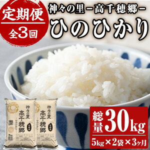 【ふるさと納税】< 令和7年産 ・ 新米 ><定期便(連続3回)>宮崎県産 神々の里 高千穂郷ひのひかり(5kg×2袋×3回)米 白米 精米 国産 ご飯 ブランド米【NK009】【...
