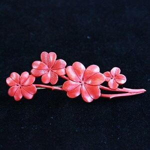 すべて手作りの緻密で繊細な木彫りのアクセサリーです。木のぬくもりを確かめてみませんか。 つげ細工 ブローチ(桜) 5.5cm