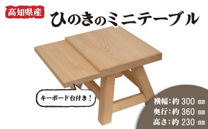 商品説明 商品名 キーボード台付 ミニテーブル 内容量 ミニテーブル・高さ:約230mm・幅:約300mm・奥行:約240mm ・台部分:約120mm 商品詳細 高知県産のひのきを加工したミニテーブルです。キーボードを置ける台をつけま...