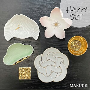 【ふるさと納税】有田焼 HAPPYSET 6点【丸兄商社】食器 器 うつわ 陶磁器 食器セット セット 皿 小皿 小付 小鉢 ぐい呑み 箸置 梅 松 鶴 麻の葉 縁起物 華やか お...