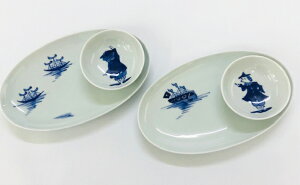 内容量 二人用セット(各2点・計8点) 【サイズ】 A:染付松竹梅鶴絵4寸蓋向 径11.8×高さ7cm B:深織部流し四弁正角皿 19×19×高さ3cm C:錦鶴絵鶴亀型蓋付珍味入れ 径5.8×高さ2.5cm D:染付市松棒型箸置 4...