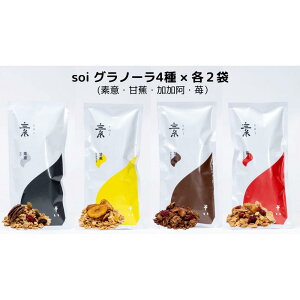 【ふるさと納税】soi グラノーラ4種×各2袋(甘蕉・苺・黄粉・抹茶) | ノベルティ プレゼント ギフト グルテンフリー 保存料不使用 酸化防止剤不使用 朝食 おやつ 間食 タン...