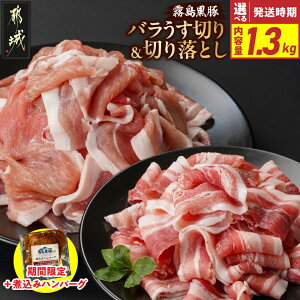 【ふるさと納税】【期間限定☆家計応援】【発送時期が選べる!】霧島黒豚バラうす切り&切り落とし1.3kgセット+ハンバーグ - 都城産霧島黒豚 バラうす切り 切り落とし(かた・もも)...