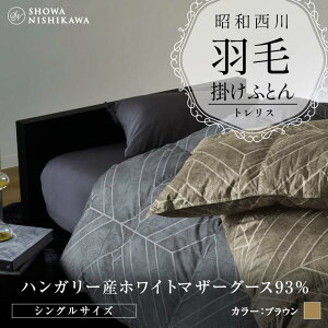 昭和西川 高品質の羽毛掛けふとん(ハンガリー産ホワイトマザーグース使用・日本製) 昭和西川 100年羽毛 トレリス ブラウン シングル ホワイトマザーグース93%
