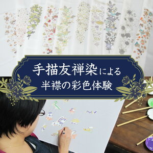 花びら一枚ずつ筆で彩色するという本格的な友禅染の体験になります。4〜5時間くらい制作に掛かります。 ■東京手描友禅工房 協美 〒1