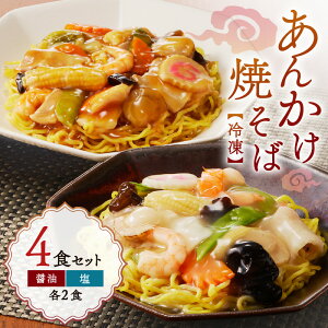 返礼品詳細 名称 あんかけ焼そば4食セット(冷凍商品) 説明 冷凍あんかけ焼そば(醤油2食)(塩2食)の詰合せセットで麺は電子レンジで温めて、あんかけの具は鍋で沸騰したお湯で温めて下さい。 あんかけの具は、白菜、豚肉、いか、え