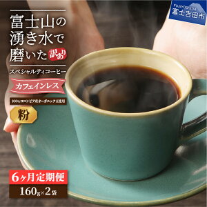 【山梨県富士吉田市】メール便発送【訳ありコーヒー定期便】カフェインレスコーヒー デカフェ 富士山の湧き水で磨いた スペシャルティコーヒーセット(豆 320g) 6ヶ月 カフェインレ...