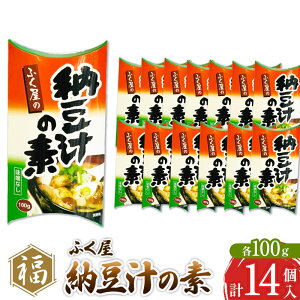 国産大豆使用の納豆をすりつぶした、納豆汁専用品。 返礼品詳細 名称 納豆汁の素 内容量 100g×14パック 原材料 大豆・納豆菌 賞味期限 発送日より12日 ※冷凍保存3か月可(冷蔵解凍) 保存方法 要冷蔵10℃以下で保存 提供元 ...