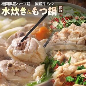 【ふるさと納税】【博多名物】福岡県産ハーブ鶏水炊き&国産牛もつ鍋(醤油味 / みそ味) 味を選べる 食べ比べセット 各2人前 お取り寄せグルメ お取り寄せ 福岡 お土産 九州 福岡...