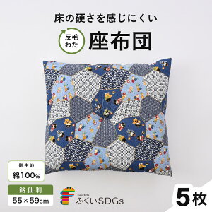 【ふるさと納税】床の硬さを感じにくい「反毛わた」座布団 側地綿100%(銘仙判55cm×59cm)【選べる柄:水玉/さくら/ロココ/蝶々/丸紋/絣/家紋/わらべ/升目/椿】【選べる...