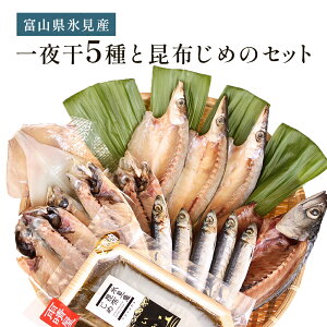 製品仕様 商品名氷見 堀与 一夜干5種と昆布じめのセット 内容量・個数・魚一夜干5種(かます開き、あじ開き、するめいか、とびうお開き、さば開き、ふくらぎ片身、宗八カレイ、さより丸干など氷見産あるいは氷見製造の干物から5種入りま