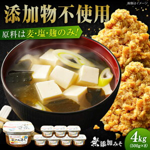 【ふるさと納税】【創業明治28年の伝統の味】無添加みそ 500g×8カップ 安心 安全 料理 味噌 みそ 麦みそ 合わせ味噌 味噌汁 みそ汁 セット 詰め合わせ 発酵 加工食品 調...