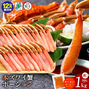 【ふるさと納税】【年内発送受付中】 訳あり 選べる 種類 無地熨斗 ズワイ蟹 ポーション 合計 500g 前後 / 1kg 食べ比べ サーモン 250g 濃厚 旨み 本ズワイガニ ...