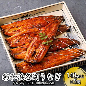 名称うなぎの蒲焼(冷凍)内容量彩和浜名湖うなぎ 140g以上×5尾・タレ(20g)×5本 製造地:浜松市・山椒小袋×5袋(国内製造)賞味期限:冷凍保存にて60日原材料