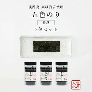 名称味のり内容量商品名 五色のり「特選」3個セット 内容量 各8切48枚(板のり6枚分) 販売者 五色水産 原材料乾海苔(のり(国産))、砂糖、蛋白加水分解物、醤油(本醸造)、みりん、食塩、海老、かつお削り節、ビーフエキス、水飴、昆布